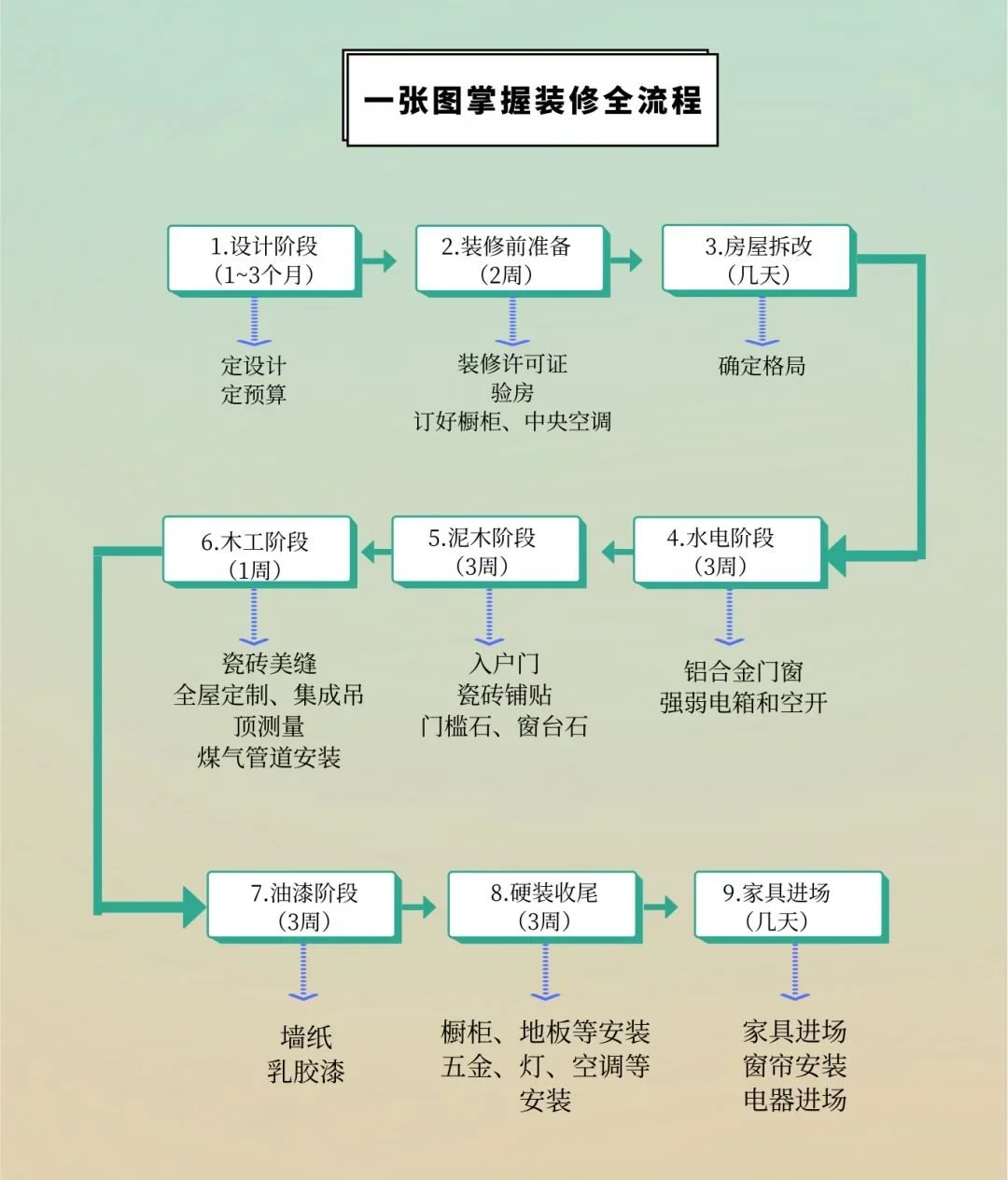 现实施工由于每个工种的切换间隔所以施工一般三个月,从起头的找拆修公司招设想师,这个时候大师万万别客套,由于这会牵扯搭配定制家具及结构的改变,正在水电施工前要先设想并安拆家电,2.硬拆的工序一般是水电、泥、木、油漆。好比正在设想前需要确定家里利用地方空调、仍是风管机,定全屋设想方案,买到就是赔到。由于铺地板前需要进行找平,4.泥工阶段最容易耽搁工期的是门槛石和挡水条,或者放置石材商家来丈量。