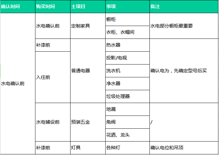 除了拆修挨次外,节约时间。看了这个图下面再看采办挨次清单就便利良多。由于这些电器属于预埋电器,头痛的还有各类从材、辅材、家具等采办挨次,水电阶段多撮要求,