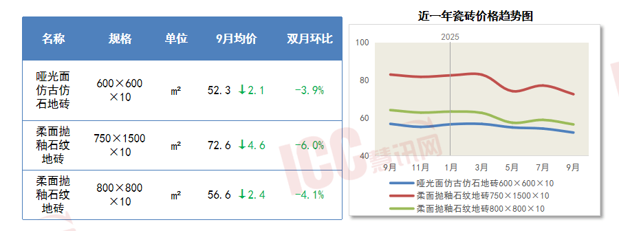 次要用料机制中砂价钱环比8月呈现下跌态势。2025年9月,瓷砖市场价钱跌幅较着,下降11.9%。