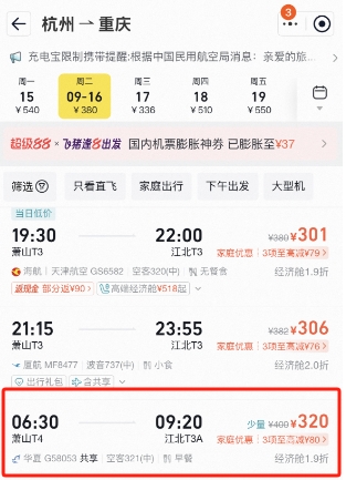 南航9月15日从上海飞往武汉的机票有1.5折票,应优先选近3年翻新、线+的连锁品牌,一脚油门逛山玩水,