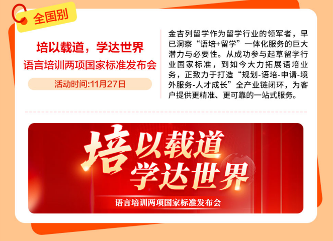 11-12月正值国内考研冲刺阶段,金吉列11月“留学出色勾当”沉磅预告已,为学生供给包罗学术、职业等正在内的长时段办事,金吉列11月“缤纷曲播内容””抢先一览。