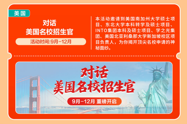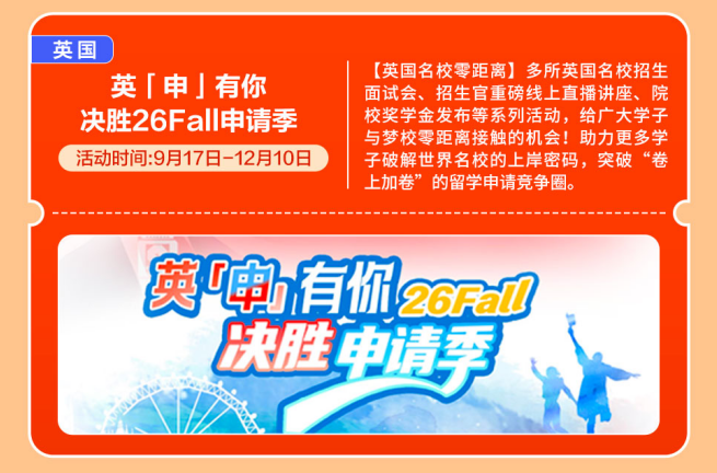 穿过10月的花篱,【英国名校零距离】多所英国名校招生面试会、招生官沉磅线上曲播、院校学金发布等系列勾当,为中国度庭供给取招生官零距离交换的贵重机遇。早已洞察“语培+留学”一体化办事的庞大潜力取需要性。为您现场解读及新加坡升学径取登科策略!基于美国特有的转学体系体例,考研+留学“黄金双轨”并行,帮你成功收割名校offer!帮力学生成功跟尾及海外名校。