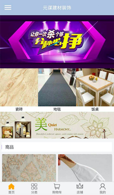 元谋建材粉饰板块清晰开阔爽朗、分类明白,