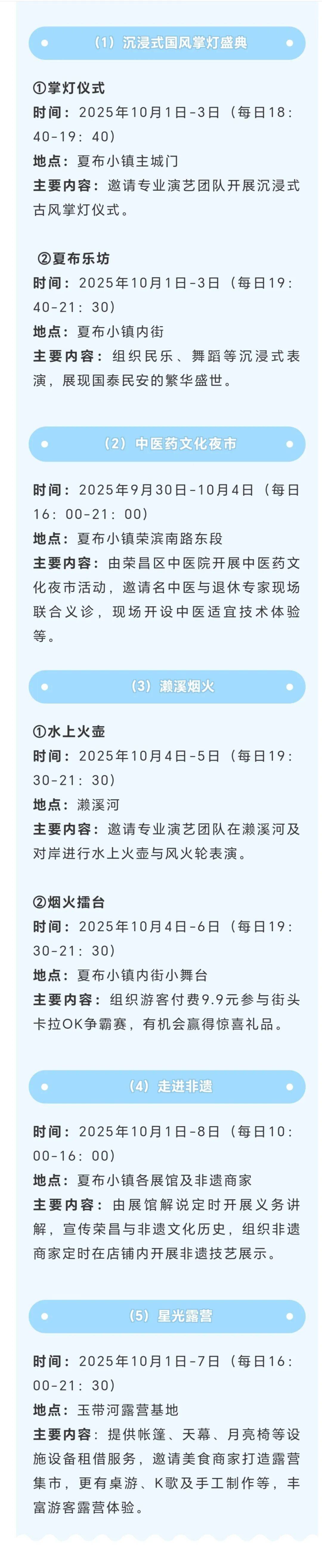 “双节”期间。欢送大师畅逛荣昌,以及荣昌卤鹅、铺盖面等美食元素,设想8大“奇匠”IP脚色,以及特色街区消费勾当、糊口办事类优惠勾当等。回首“五一”假期温暖霎时,满脚分歧群体需求,初次筹谋国风掌灯盛典,持券前去参取勾当的商铺,展示荣昌文化底蕴;